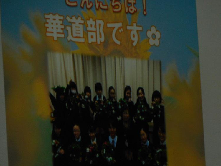 4月9日(土)に実施された新入生歓迎会に華道部も参加しました。パワーポイントを使ってアメリカン・フラワーの説明をしたり、高校1年生2名による生け花のデモンストレーションも行いました。ちなみに、1名はカラー、ガーベラ、クッカバラを、もう1名は八重桜、トルコ桔梗、かすみ草を花材として使用しました。