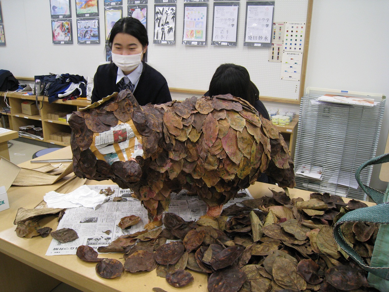 思ったように制作が進まず苦労しましたが、なんとか無事に完成し達成感を感じています。来年は、どんな動物を作ろうか、今から部員同士で話が弾んでいます。