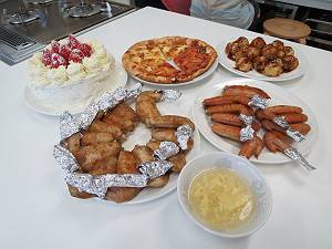 クリスマスケーキ・ピザ・チキン・たこ焼き・スープ