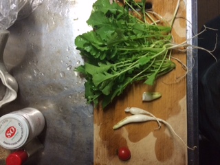 学校の花壇に植えておいた大根を、早めに収穫してしまったので各自持って帰って調理しました。