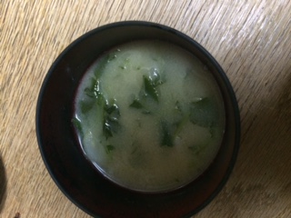 画像は、収穫した大根を使った味噌汁です。