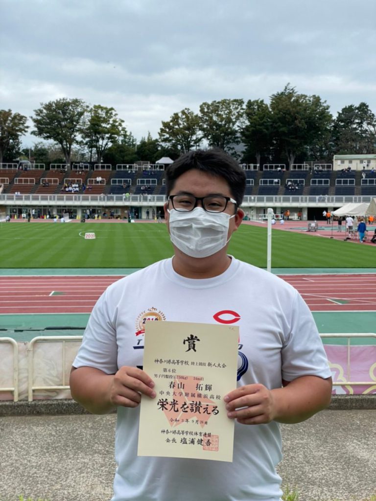 本日は4日間に渡って行われた県高校新人大会の最終日でした。春山拓輝(2)は男子円盤投で2m29cmものベストを更新して34m41、6位入賞を果たしました。