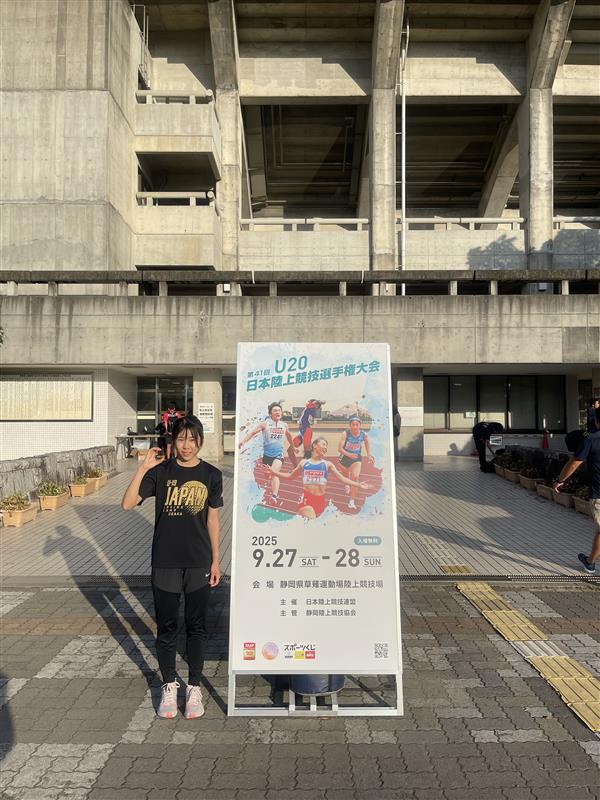 今回3000mに出場させていただきました。岡﨑萌々です。今回はコンディションが合わず、ベストタイムから1分以上遅い結果となりました。1ヶ月以上続いているケガや体調と気持ちを今大会に合わせられなかったことが原因だと思います。インターハイが終わってから、気持ちに緩みがあり、腰のケガもあったことで、モチベーションの維持に悩んでいました。特に9月は夏まで自分が持っていた陸上に対する思いを取り戻すことができず、再び頑張れる方法を模索していた時期でした。そしてあっという間にU20の大会の日が近づき、心も体も全く仕上がっていない状態で迎えることとなってしまいました。欠場することも考えましたが、この大会を再スタートの踏み台とするために出場することに決めました。今までの中で最も失敗に終わったレースだったかもしれません。しかし、インターハイに置いてきてしまった走りへの思いをもう一度感じることができた大切な一本となりました。もう走りたくないと思っていた自分に会場まで行って最後まで熟考することを提案してくださった顧問の先生方に感謝しています。そして、出るかどうかも曖昧な中、私を信じて応援に来てくれた両親にも感謝しています。