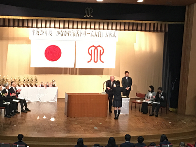 2月4日県立体育センターにて、神奈川県教育委員会主催「かながわ部活ドリーム大賞」の表彰式があり、高校3年臼井 優がメンバーシップ賞を受賞しました。今までの競技実績に加え、地域の清掃活動を3年間続けた事などが評価されたのだと思います。