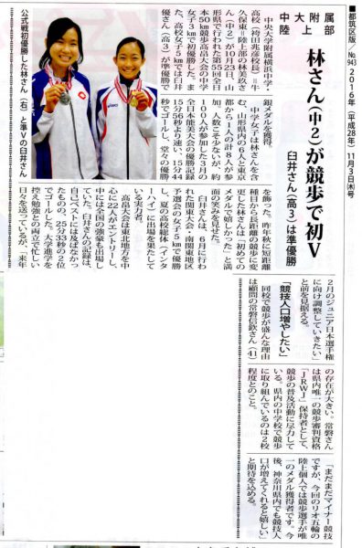 先日の全日本競歩高畠大会の結果を踏まえ、タウンニュース都筑区版に取り上げていただきました。