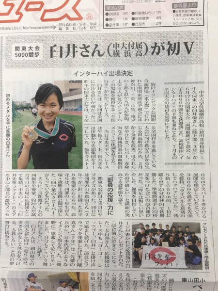タウンニュース都筑区6月30日版に高校3年臼井 優の関東大会優勝の記事を掲載していただきました。7月29日から岡山県で行われるにインターハイに向けて頑張りますので応援よろしくお願いします。