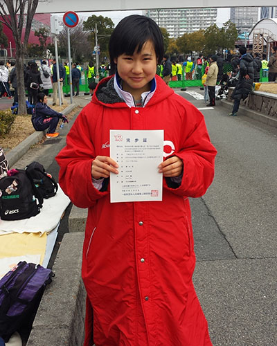 2月15日(日)兵庫県神戸市六甲アイランド 甲南大学周辺で行われた第26回ジュニア選抜競歩大会に出場してきました。高校1年 臼井 優が高校女子5キロの部(89名参加)に出場してきました。初めての全国大会で緊張した様子でした。タイムも自己ベスト更新とはなりませんでしたが今持てる自分の力を発揮できたと思います。