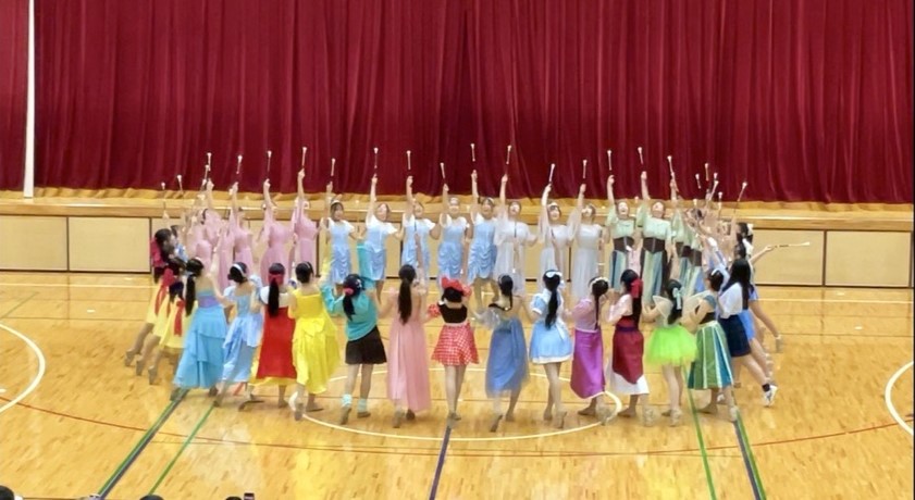 縦割り演技では、「白雪姫」「塔の上のラプンツェル」「シンデレラ」「アナと雪の女王」の4つのグループに分かれ、それぞれの物語をテーマに一から演技を構成しました。部活以外の時間にも集まり、たくさんの話し合いと練習を重ねて作り上げた、グループ全員の想いが詰まった演技となりました。