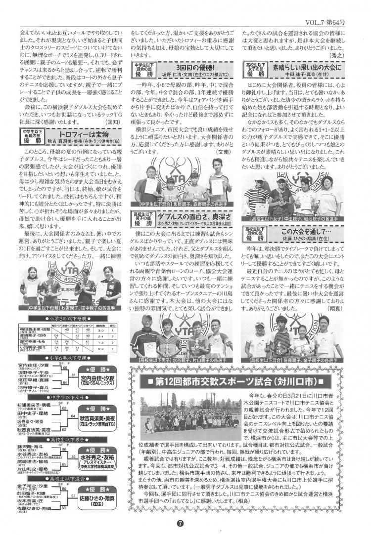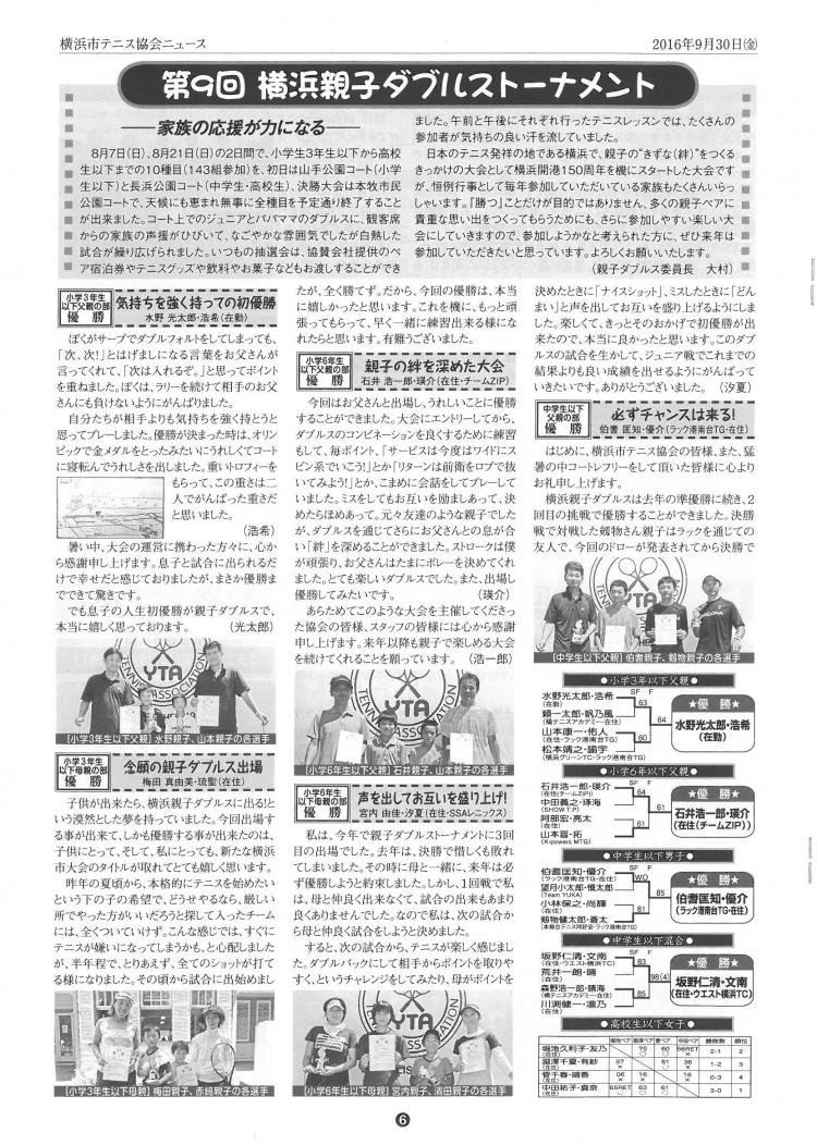 8月に開催された横浜ダブルストーナメント大会の高校生以下男子の部で,本校テニス部水谷友祐君親子が見事優勝しました。その様子が,横浜市テニス協会発行の横浜市テニス協会ニュース第64号に掲載されました。