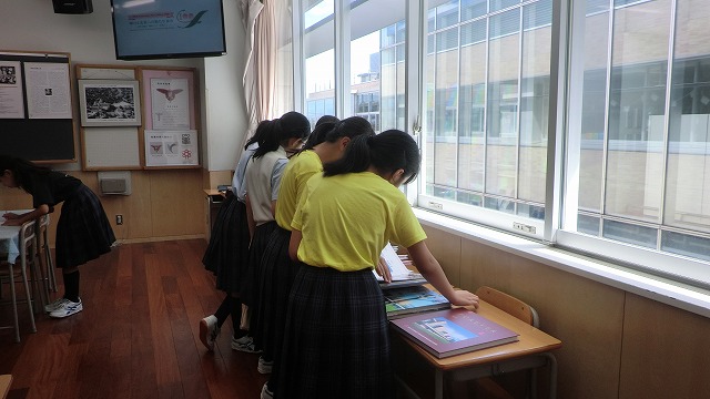 展示してあるパネルの中から答を探すので、参加者の方々は本校の歴史や、渡邊たま女史の紹介を熱心にご覧になっていました。