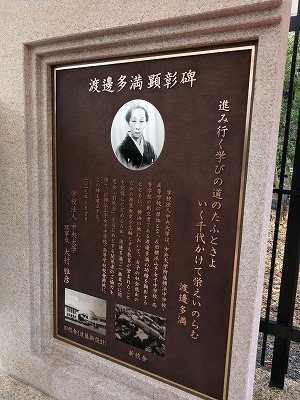 さて、この度は、学校創立者である渡邊多摩様の功績を称えられての顕彰碑除幕式に、関係者としてご招待賜り、心からありがたく出席させていただきました。まさか山手の校舎跡地に、このような誇り高いご立派な顕彰碑が建立されるとは夢にも考えず、3月1日、中央大学附属横浜高校卒業式が挙行される前日のお知らせでしたので、想像しながら卒業式を迎え、心は早くも山手に飛んでおりました。