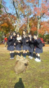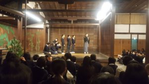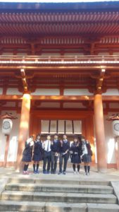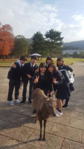 今日と明日は班別自主行動です。一学期に研修旅行委員を中心に様々なテーマを考え、そのテーマの中から希望するテーマを一人一人の生徒が選び、クラス横断型の班を作りました。何回も班での話し合いを重ね、コースを考え、今日に至っています。本校では、中学2年で鎌倉校外研修、中学3年では4月に東京校外研修を実施しています。その経験を活かし、今日の班別自主行動が行われています。夕方は能と狂言の鑑賞でしたが、鑑賞を通してお互いを尊重していることも学べました。生徒達の生き生きとした表情が印象的でした。