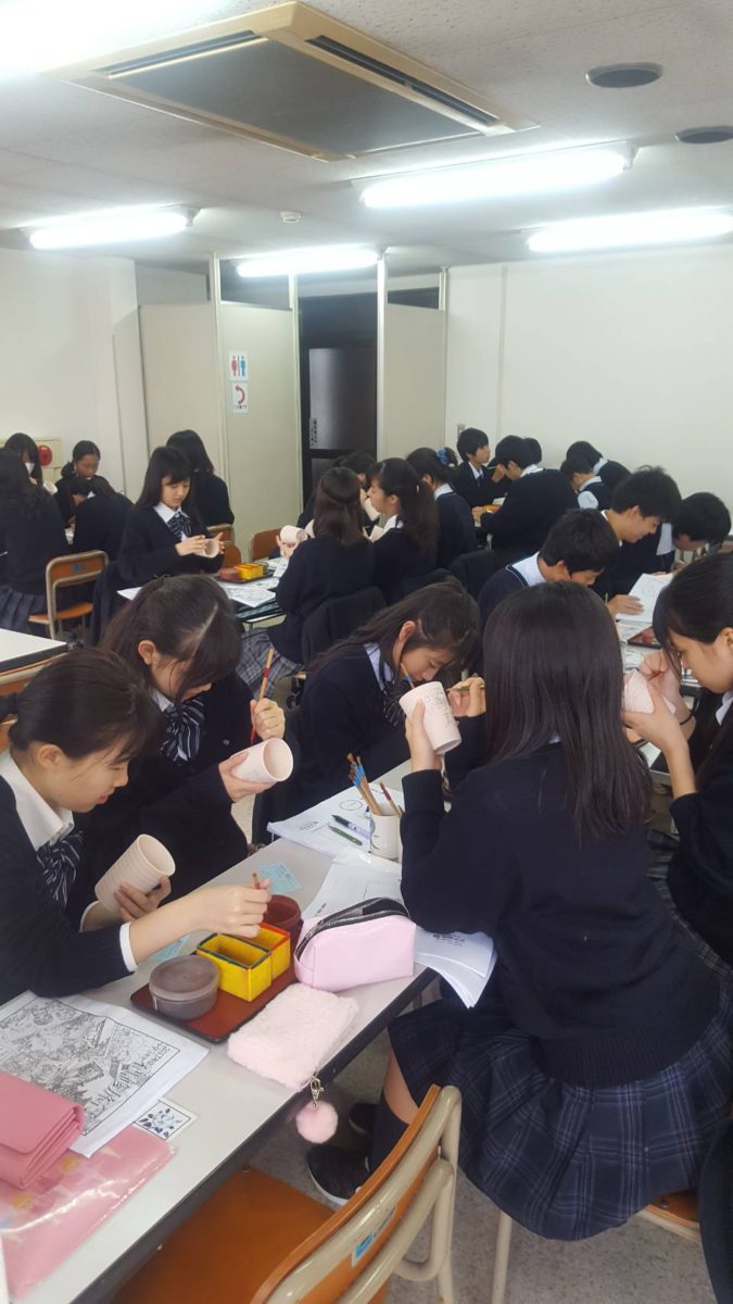 研修旅行最終日の今日は、3コースに分かれ、クラスごとでの観光です。班別自主行動では場所的に行きにくい所をバスで巡りました。午後は、清水焼の絵付け体験を行いました。みな、思い思いの絵を描いていました。生徒たちはこの4日間、法話体験、班別自主行動、座禅体験など様々な経験をし、そこからたくさんの気付きがありました。中学校生活最後の宿泊行事である研修旅行が、思い出深い、実りある研修旅行になりました。