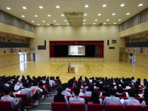 6月19日(火)6校時、体育館において、中央大学入学センターから講師をお招きし、キャリアガイダンスが行われました。中央大学の全学部全学科の詳しい説明を受け、生徒たちは中央大学への興味関心がさらに高まった様子でした。