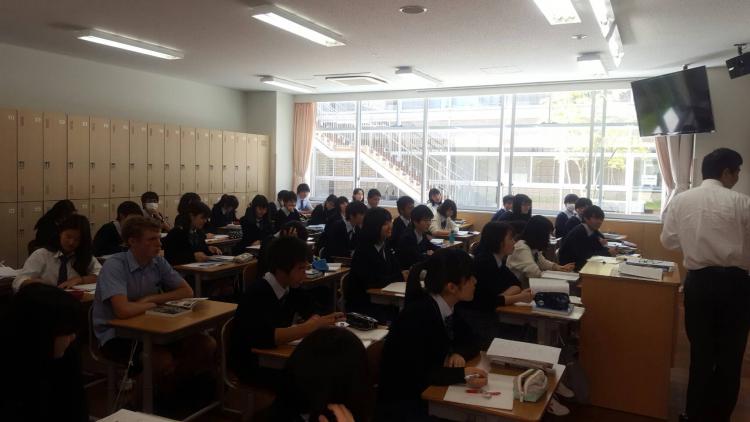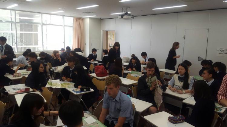 ニュージーランドからの留学生は、今日は1日授業体験です。歴史、国語、数学などBuddyと一緒に様々な授業を受けました。日本での授業が、良い思い出になってくれればと思っています。明日、留学生は中学2年生と鎌倉校外研修に参加します。中学2年生が日本の古都をガイドします。