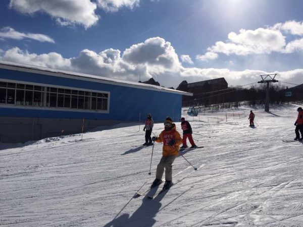 今日は、朝食時は雪でしたが、講習が始まる頃には青空も見え、安比高原に来てから初めてゴンドラが稼働しました。ゲレンデでは、かなり上達して滑走している生徒達の姿がとても印象的で、楽しそうに滑っていました。