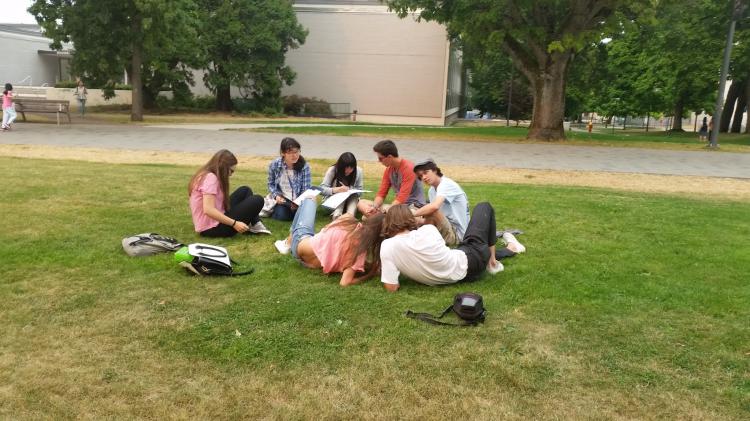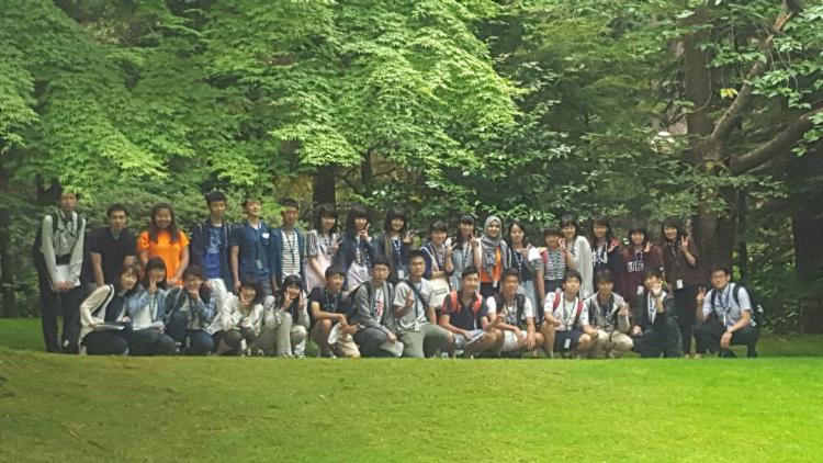 研修3日目、生徒たちは英会話能力の変化を実感しているようです。本日はレッスン後のオプショナルツアー第二弾として、キャンパス内の新渡戸庭園を訪れました。苔むしる本格的日本庭園で、しばしの憩いを感じたようです。ドミトリーは、20階建ての最新建築で、セミナー教室棟が併設されており、そこで研修を受けています。部屋は8畳ほどの個室で、生徒たちはコインランドリーを使って洗濯もしています。いろいろな意味で自主性が養われています。