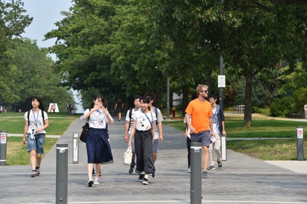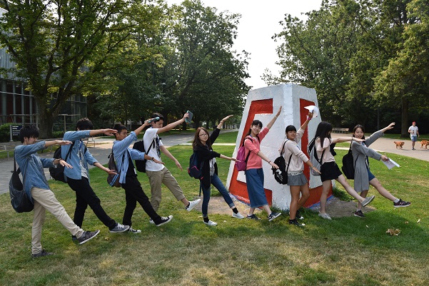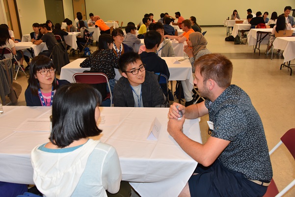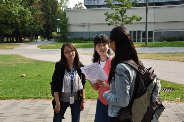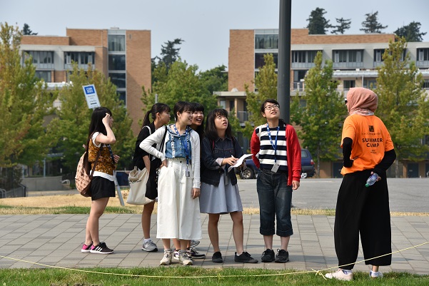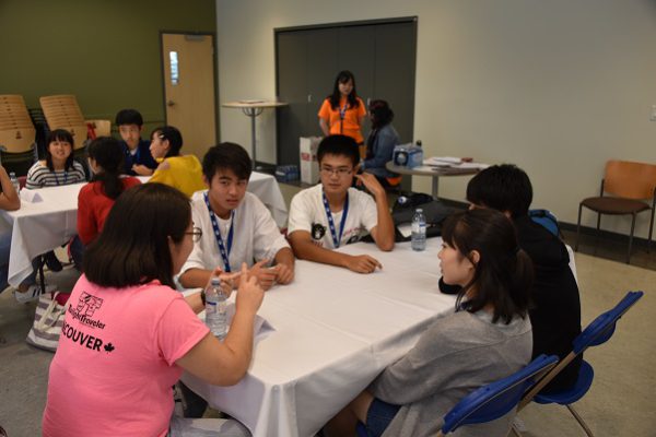 今日からまた通常のレッスンが始まりました。今日はいつもと違って教室を飛び出し、様々なアクティビティに挑戦しました。午前中は、「サバイバル英語」として、教室を出て、UBCの学生のバディーと与えられたお題に対しての答えを学生や店員などに英語で聞きながら、大学構内を歩きました。導き出した答えはポスターにまとめ、得点を競い合いました。午後は「英会話タイム」として、カナダの人たちとの会話を楽しむ時間をもちました。年齢や、性別、職業や人種が様々なカナダの人たちと、色々なトピックについて英語で話をしました。さらに、夜は、日本や複数のアジアの国々に滞在したことのある元外交官の方をお呼びして英語での講演会を開催しました。生徒たちは、いろいろな国での体験談に真剣に耳を傾け、質問も出て、盛況な会になりました。教室を飛び出し、様々な背景を持つ人々と英語を使って意思疎通をしながら、国際的な視野を持って自分の将来の進路を考えたりするなど、徐々にではありますが、実地に、そして、より高度な英語の運用もできるようになってきました。