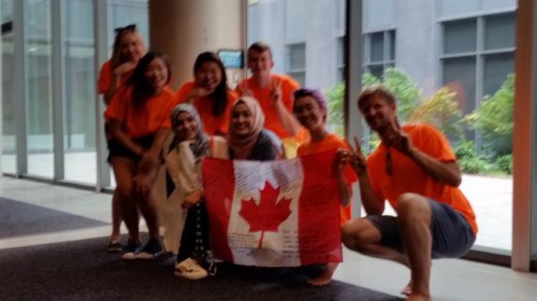 本日、すべての研修が無事終了しました。午後のESLの後に、担当の先生から生徒一人一人に終了証書が手渡されました。生徒たちの満足感に満ちた顔が印象的でした。レッスン後は、生徒たちが企画したフェアウェルパーティが開かれ、グループごとに分かれて、本校生徒たちがESLの先生やバディに折紙を教えたり、全員で「故郷」を英語の歌詞で歌いました。UBCのバディたちもパフォーマンスを見せてくれて、最後は全員で盛り上がり、別れを惜しみました。知的好奇心に満ちた有志生徒のリクエストで、パーティ後に、世界有数の大学の立派な図書館を二ヶ所巡りました。本年度も、生徒の目的意識が高く、とても充実した研修となりました。