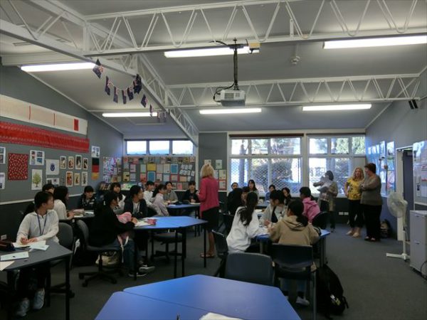 本日から研修校での授業が始まりました。朝の集合時は、半日ぶりに友だちに会えてとても嬉しそうな様子で、昨日のホームステイでの出来事を報告しあっていました。男子は全員元気なようですが、女子の中にはホームシックになっている生徒もいます。しかし、ホームシックの生徒を気遣い、ホストファミリーは夕食後にゲームなど一緒にしながら過ごしてくれたようです。