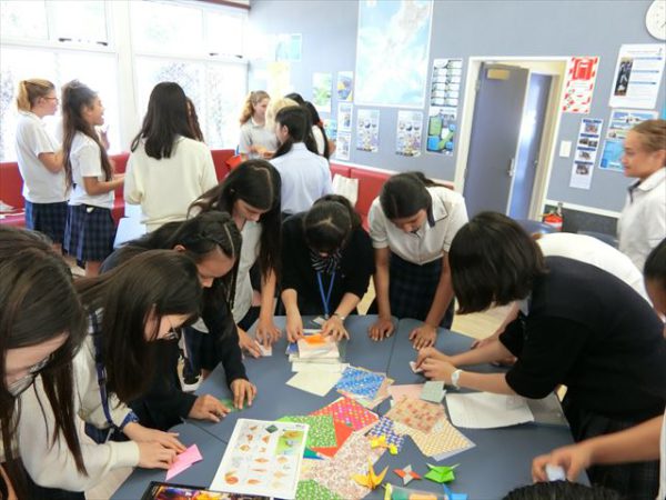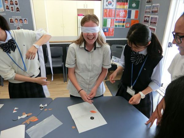 女子校では、ランチにビザをご馳走になってから、バディとともにFarewell Partyを開き、学校での最後の時間を過ごしました。修了証をいただいてから、まずはお手玉や福笑い、折り紙などの日本文化を体験してもらいました。そして、教室の外でスーパーマリオの劇とソーラン節を披露しました。バディはとても楽しんでくれている様子で、生徒も日本で準備してきた甲斐がありました。