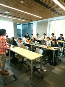 語学研修プログラム2日目。昨日は午前中に構内ツアーを行ったため、朝から教室で勉強するのは初めてでした。6時間の研修は生徒たちにとってはかなりハードだったようですが、途中野外に出ての活動をしたり、クラス対抗ゲームなどを行ったりして楽しく終えることができたようです。