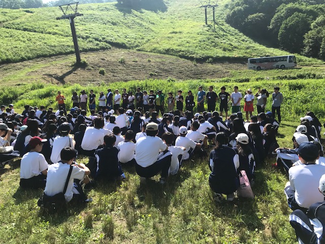 林間学校も2日目の今日は、1日中天気に恵まれました。日陰は涼しく風が吹けば快適ですが、陽の当たるところではとても暑く、日焼けしている生徒もいます。