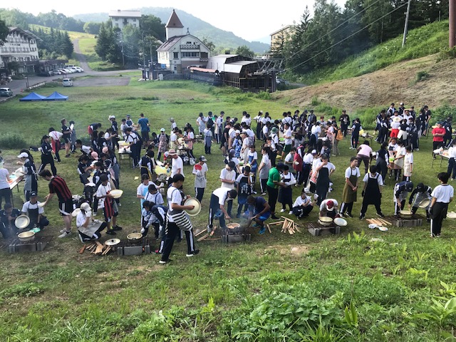 今日からEnglish Summer Campが始まりました。全体がクラス混合の19班に分かれ、ALTの方々と様々なアクティビティーに参加することによって、英語によるコミュニケーションへの抵抗感が和らぎ、英語を聞くという面で少しずつ成長しているように感じます。夕食の飯盒炊飯、夜のゲームを中心とするアクティビティーもALTの先生と一緒に活動する盛り沢山の1日でしたが、みんな元気に楽しく過ごしています。