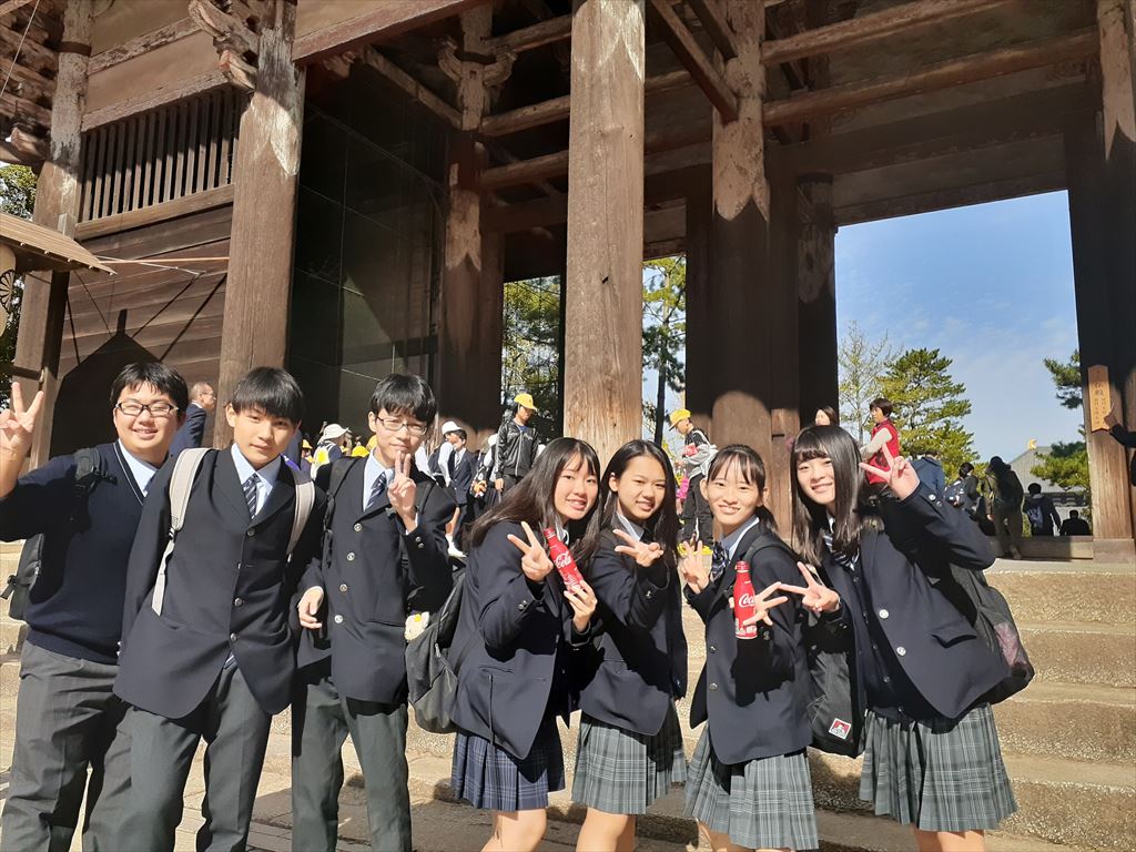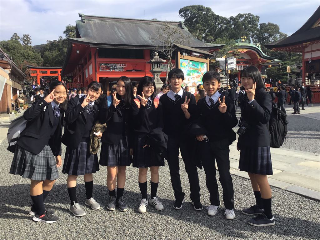 本日は班別自主行動1日目です。奈良のホテルを8時30分に出発して、自分たちで決めた見学地を回り、京都のホテルへ17時までに到着するコースを自分たちで計画してきました。各自見学地は様々ですが、全班無事に京都に到着することができました。
