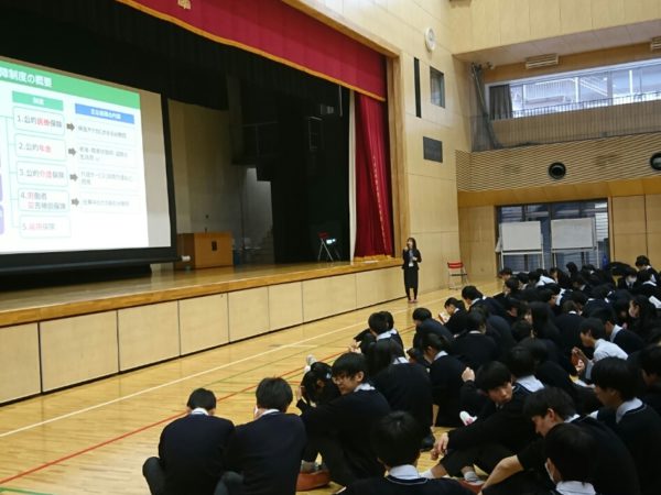 1月28日、高校1年生の家庭科講座が開催されました。生命保険文化センターのご協力をいただき、松本彩様を講師にお招きして講演をしていただきました。
