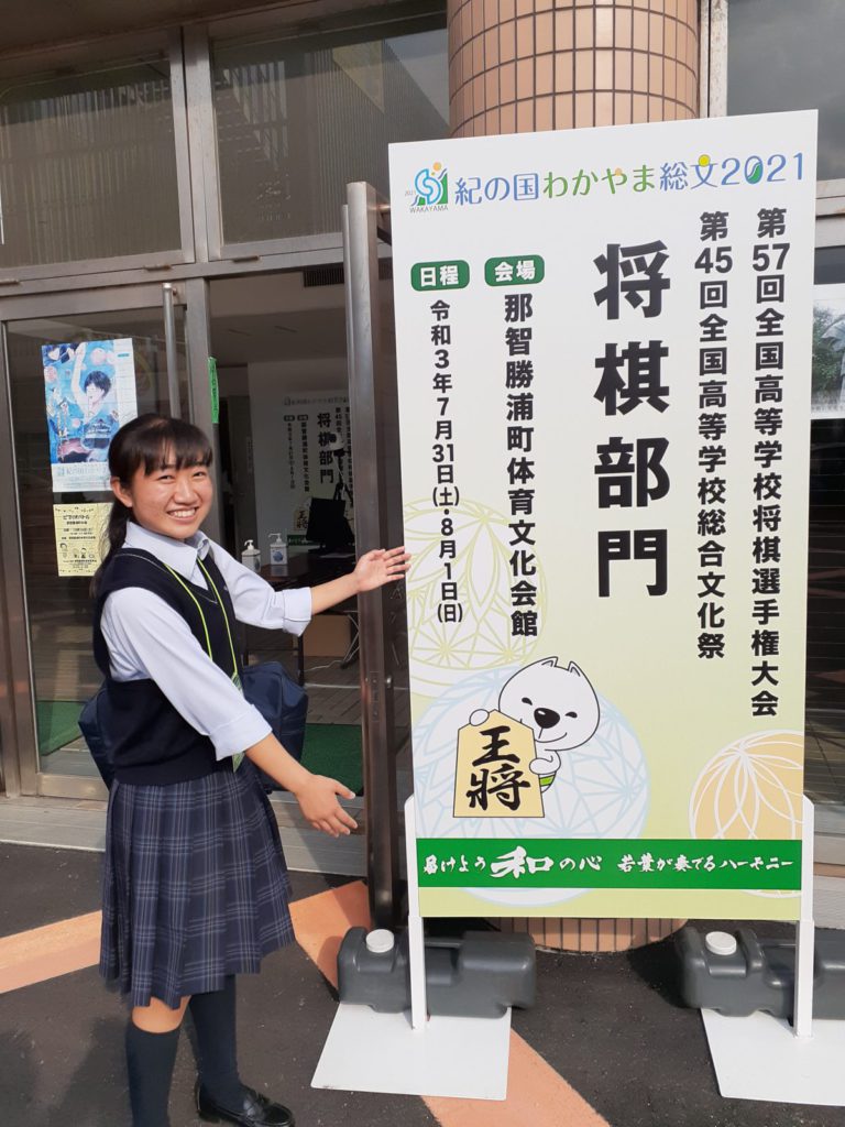 7月31日~8月1日、和歌山県那智勝浦町で開催されました全国高校総合文化祭・将棋部門において、高校2年の馬立紅さんが、3勝1敗で予選を通過し、決勝トーナメント進出を果たしました。決勝トーナメントでは、同県対決となった初戦で惜しくも敗退となりました。