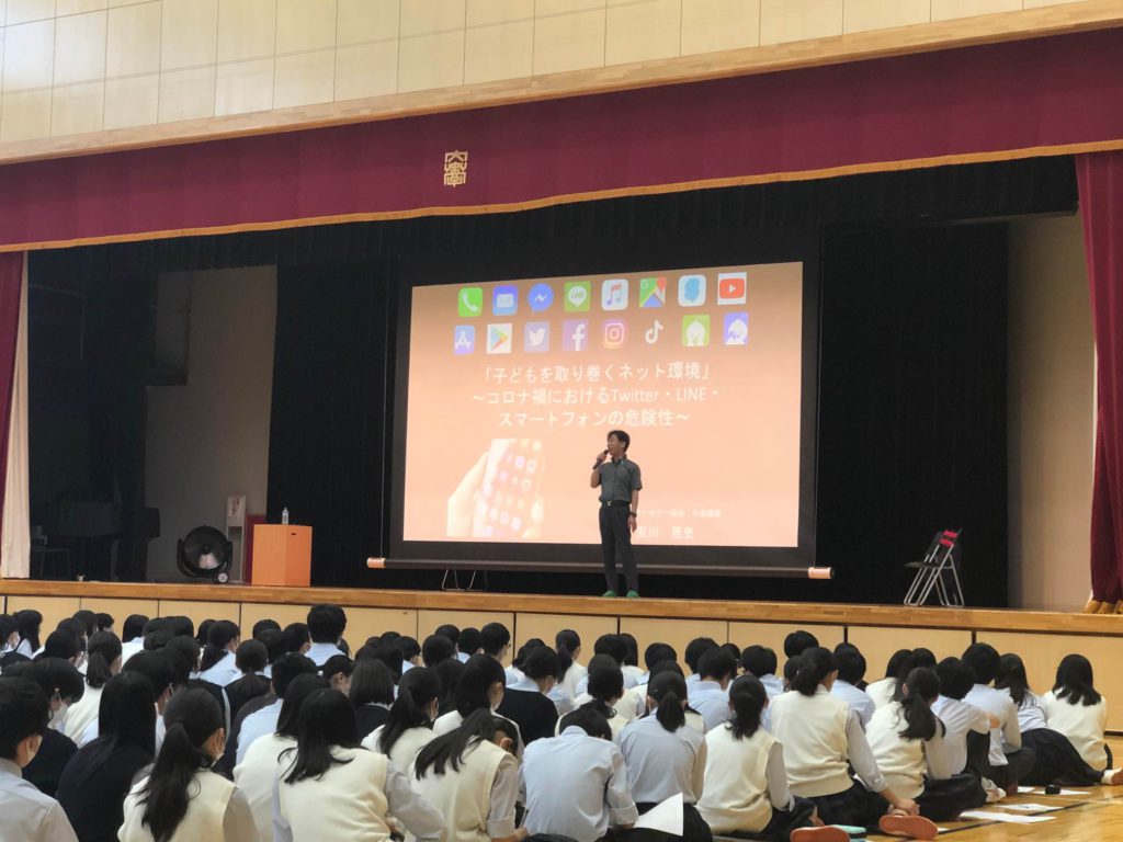 6月21日(火)、本校体育館にて、一般社団法人全国ICTカウンセラー協会代表理事 安川雅史様より、「子どもを取り巻くネット環境」~コロナ禍におけるTwitter・LINE・スマートフォンの危険性~と題し、ご講演をいただきました。