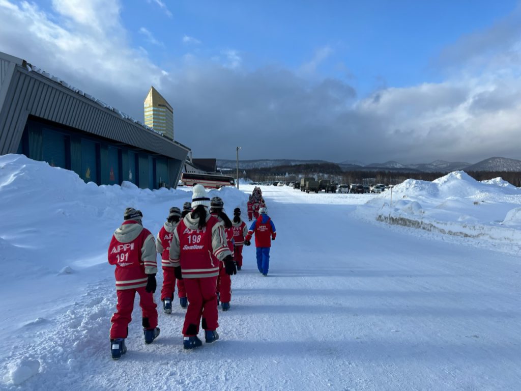 また、雪の上を初めてスキーブーツを履いて歩く生徒が多く、はじめはかなり苦労している様子でしたが、講習後には滑らかに雪の上を歩いている姿が見られました。そうした生徒たちの適応力にはしばしば驚かせられます。