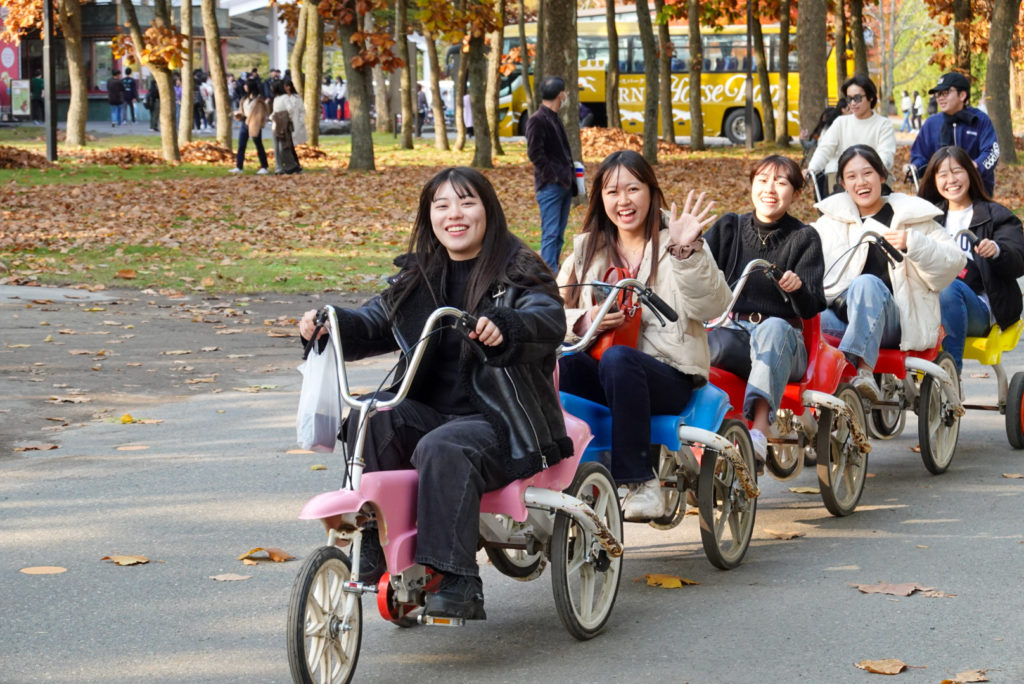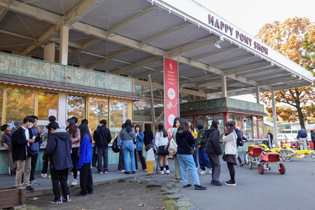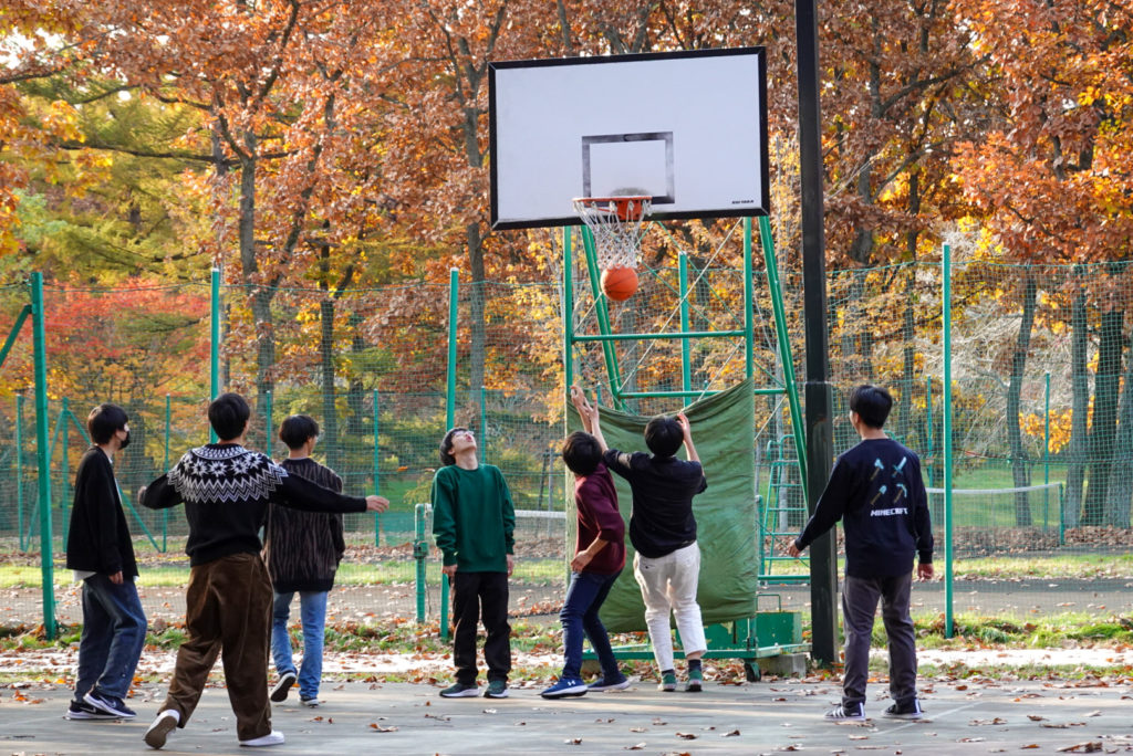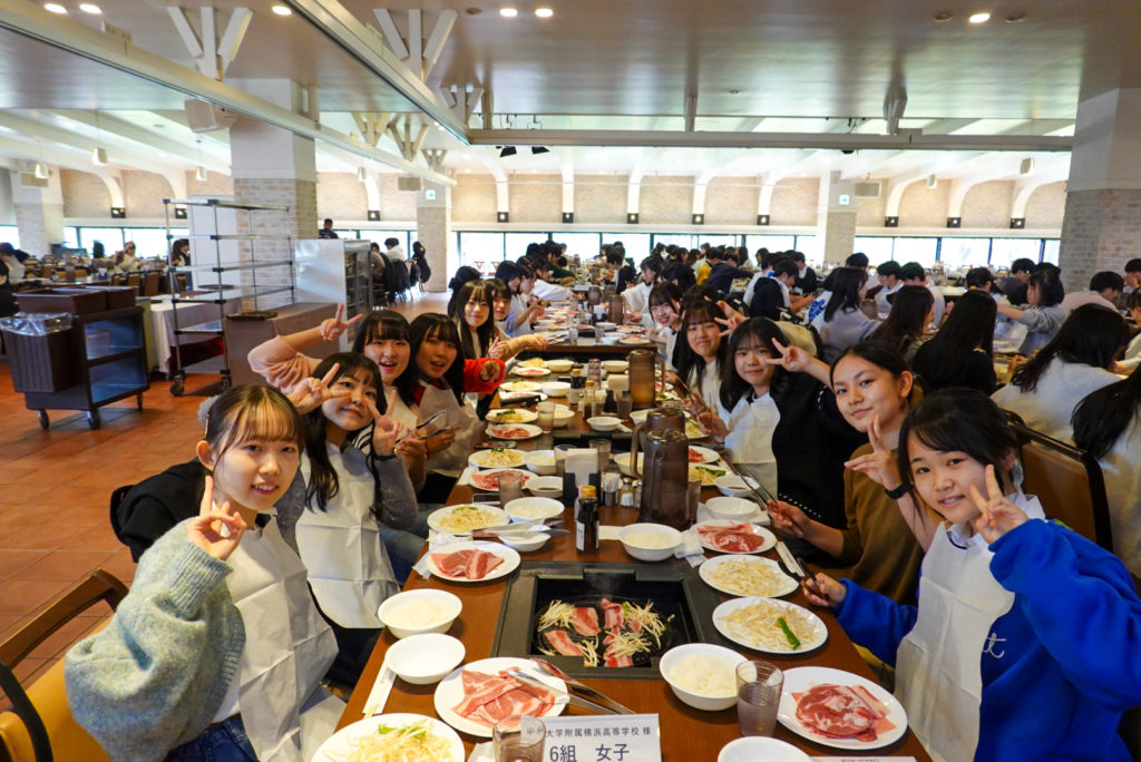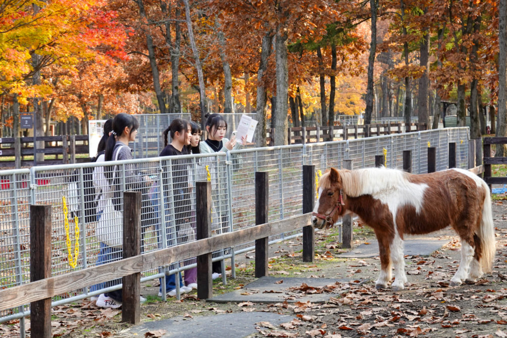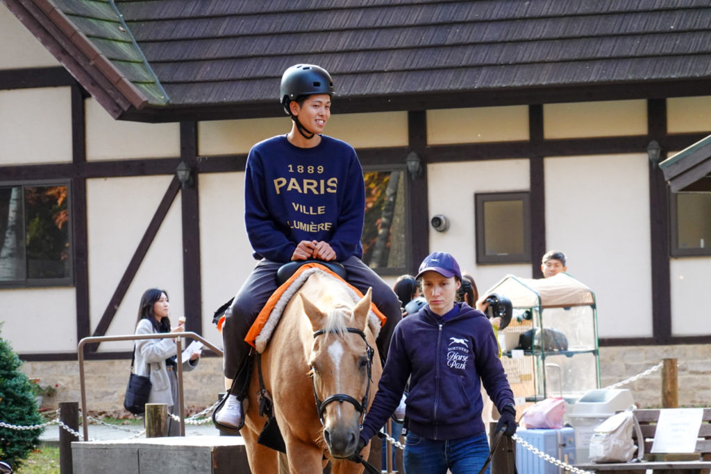 4泊5日の行程で、全体行動の多くは1団の5クラスと2団の4クラスに分かれて、時間差をつけて進めます。まずは新千歳空港の近くにあるノーザンホースパークに行き、そこで昼食のジンギスカンを堪能しました。食後はそのままノーザンホースパークで、馬との触れ合いや自転車での自然散策、スポーツなどを楽しみました。北海道の大自然の中で、普段味わうことのできないのびのびとした時間を友達と一緒に過ごすことができました。