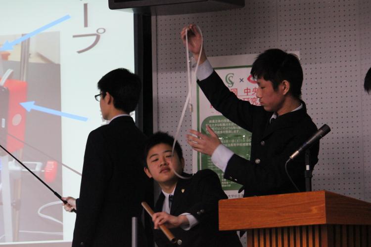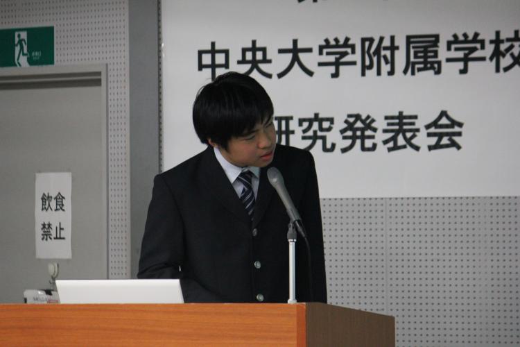 中央大学高等学校より2名、中央大学杉並高等学校から1名、中央大学附属横浜中学校からは今回唯一の中学生として1チーム、最後に中央大学附属高等学校から2名が発表を行いました。