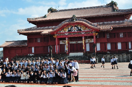 研修旅行もいよいよ最終日。5日目は、3泊したホテルを出てバスで首里城へ。守礼門をくぐり、クラスで記念撮影をした後に、本殿を中心に見学をしました。琉球王朝の頃の様子がわかる展示を見て、沖縄の学習のしめくくりとしました。その後、バスで国際通りに行き、班別行動で散策をしました。昼食を各自とり、お土産購入をしたりアイスを食べたりしたようですが、ちんすこうだけではなく、楽しい思い出と学習の成果も忘れずにお土産として持って帰ってほしいと思います。