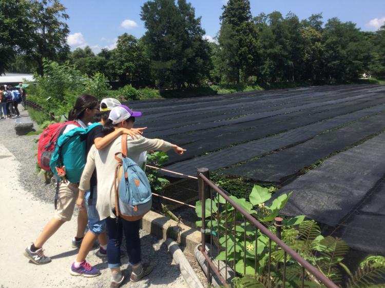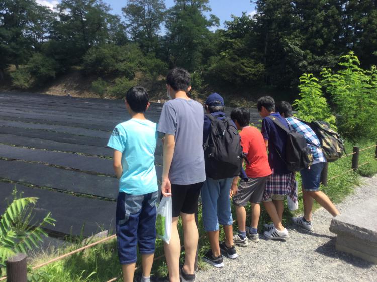 林間学校の最終日は、安曇野のわさび農場で散策です。わさび田を見ながら、班ごとに自由に散策しました。初めて見るワサビ田に興味津々の生徒もいました。