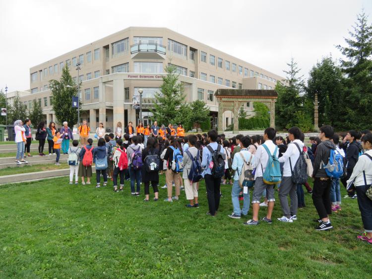 昨日同様に肌寒い天気の中、午前中はUBCのバディによる2時間の大学キャンパスツアーを行いました。広大で豊かな自然と今昔の建築施設が生み出す贅沢な学習環境は驚きの連続でした。