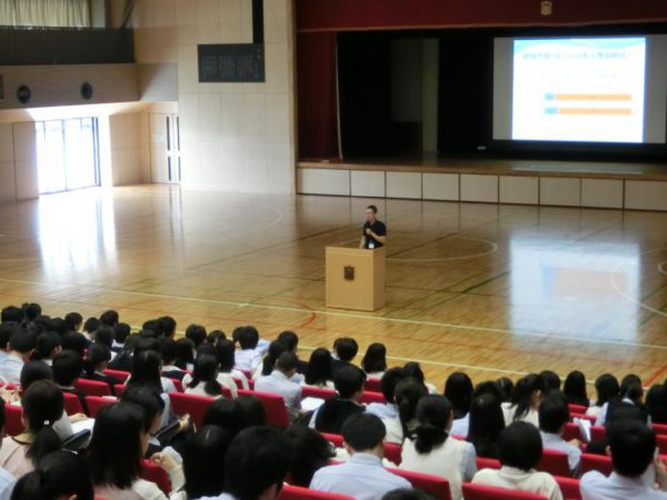 本日高校1年生は家庭基礎の授業の一環として大塚製薬の方にお越しいただき、「熱中症予防講座」を実施しました。