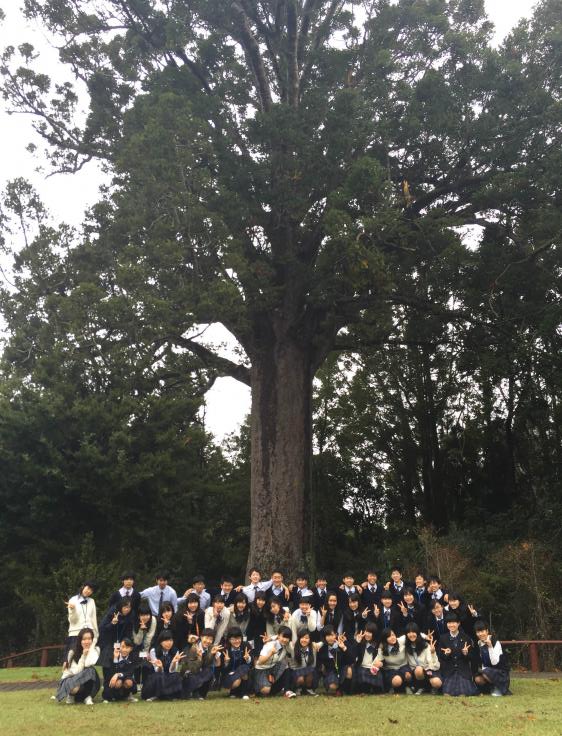 午前の語学研修の後、バスに乗ってパリーカウリパークへ移動し、大きなカウリという木の前で集合写真を撮りました。