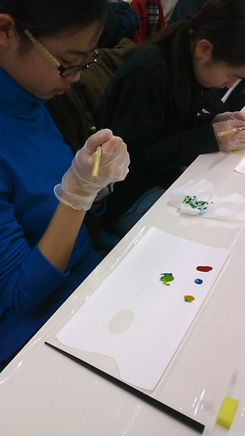 工芸体験は、昨日の中1と同じ、「箸の漆塗り体験」です。乾かすのに1ヶ月かかるそうです。今から作品が届くのが楽しみです。