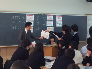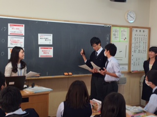 シミュレーションゲームを通じて、市場、競争、独占、カルテルについて学習しました。生徒たちも普段の授業と違った雰囲気の中、理解を深めた様子です。また講師の方が中央大学OB/OGとのことで、学部選択や大学の講義の話、さらには就職の話にまで質問が及び、文理選択を控えた高校1年生の進路探究の上でも有意義な時間となりました。
