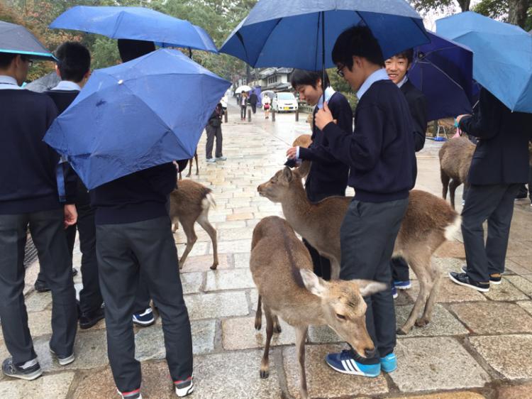 本日は東大寺の見学のあと、京都へ移動し、クラス単位で寺社見学や体験学習を行いました。 そして最後に学年全員で能楽鑑賞をしました。事前に古典の授業で勉強はしていたものの、生の迫力は別格で、日本の伝統芸能の魅力を再認識することができました。 また、旅館では夕食時に豆腐づくりを行いました。みんなで美味しくいただきました。