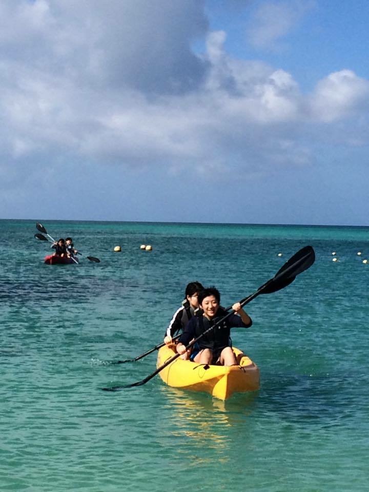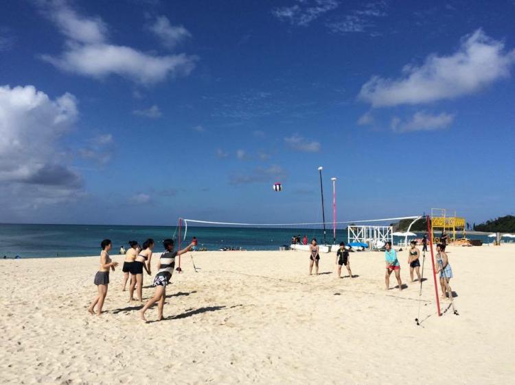 研修旅行4日目 生徒達が心待ちにしていた体験学習の日。エメラルドグリーンの沖縄の海で、マリンウォーカーやシュノーケル、グラスボートなど、希望のマリン体験を存分に楽しんでいました。時間の合間には、ビーチサイドの白い砂浜でビーチバレーを楽しむ生徒もいました。沖縄の青空の下、最高の思い出の1日になりました。