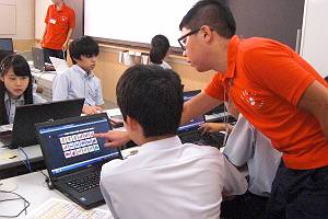 9月5日、中央大学商学部斎藤正武先生のゼミ生が、ファシリテータとなり、中学2年生が教科「技術」の中で、プログラミングの授業を行いました。 現役の中央大学学生から教えていただくことにより、プログラミングの楽しさを知る契機となりました。
