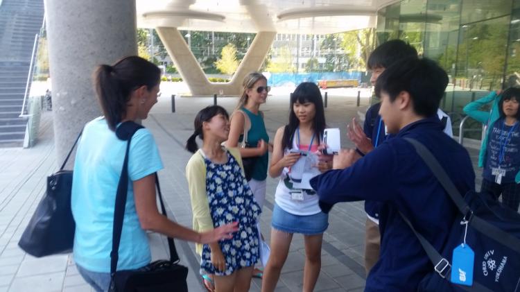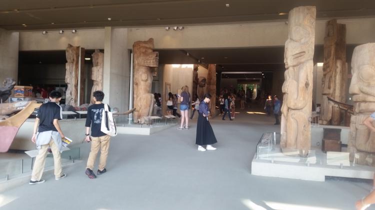 午前中のレッスンは3時間、集中力や効果を考えて様々な工夫が見られます。今日は、重要なフレーズを含むセンテンス書いたカードを読んで、指名した相手が同じものを持っていたらカードを捨てていくという、トランプ感覚で表現の定着をめざしたレッスンがありました。 午後はグループごとに、紙で指示された内容に沿って、campus内10箇所くらいの場所を見つけ出して調べたりインタビューする企画があり、とても盛り上がりました。 レッスン後、有志で学内の民族学博物館に赴きました。世界的なトーテムポールコレクションや日本をはじめ各地の民族資料を見学しました。午後のレッスンで5キロは歩いたのに、さらに往復40分かかる博物館に行った生徒たちの、知的好奇心と体力に脱帽しました。 (引率担当)