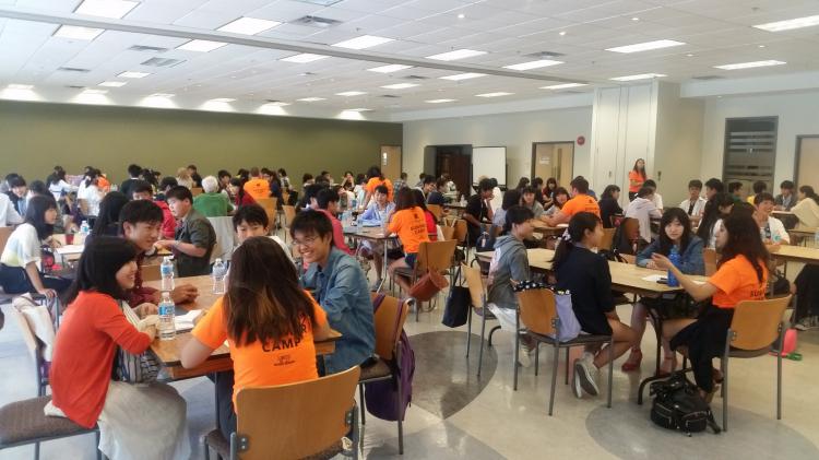 朝からの快晴で、生徒たちも晴れ晴れとレッスンを始めました。 通常の3時間のレッスンをこなし、午後からspecialレッスンをおこないました。ESLの先生方、UBCの学生バディに、大学近隣にお住まいの高校生、もと外交官の方々などもお招きしてテーブルに着いていただき、生徒3~4人一組で各テーブルを15分おきに回って様々な会話をします。これを10回繰り返すことで、少人数の会話が増え、たくさんの方の英語に耳を慣らす狙いは、うまくいったようです。 ドミトリーを紹介します。新しい建物で、個室は10畳くらいで生徒の評判は悪くないようです。1階にあるコインランドリーで、生徒たちは休み時間に洗濯もこなしています。男子生徒の姿を見ると、本当にたくさんのことを学んでいることに気づきます。 明日からの土日は、教室を離れてリフレッシュです!もちろん街で、またバディとの会話で、英語のトレーニングは続きます。 (引率担当)