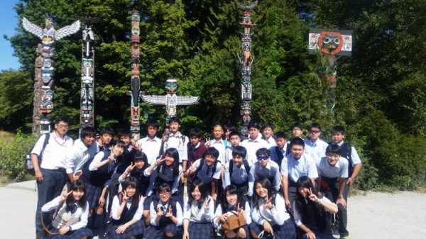 研修一行は、10時間のフライトでカナダ西部時間の4日午前11時半(日本時間5日午前3時半)に、バンクーバーに到着しました。 機内では、離着陸時に盛り上がりましたが、CAの方々に生徒たちの機内での素行や態度について、お褒めの言葉をいただきました。4日の夕方に日本をたち、同じ日の午前中にカナダに着くという時差のマジックに、頭では理解していても新鮮な驚きを感じていたようです。 到着後、スタンレーパークなど市内中心部の観光をして、夕方にブリティッシュ コロンビア大学(UBC)に到着しました。学内の巨大スーパーで買い物をして、夕食後はドミトリーの個室の整理などにあてて明日からの生活に備えました。 初日から充実した内容で、長旅と時差もありやや疲れが見えますが、生徒たちの意欲は旺盛です。明日からの語学研修が楽しみです。 (引率担当)