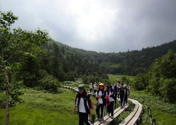 中学2年生の林間学校二日目は、トレッキングしながらの環境学習でした。