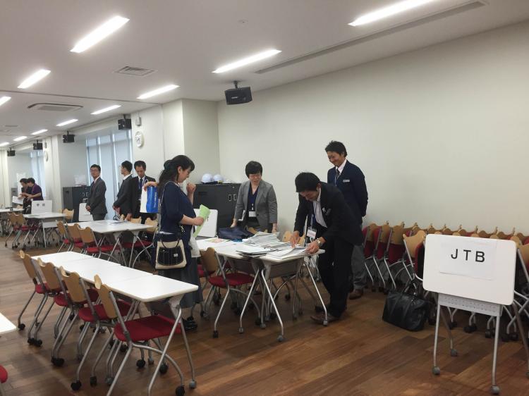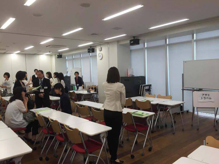 第二部は会場を移して、学校と旅行社3社がブースを構えて、それぞれ前半の説明に関するさまざまな質問や相談を受けつけました。渡航の手続きを確認したり、どこに行こうかと迷いながらパンフレットを持ち帰る保護者、生徒の皆さんの姿が印象的で、盛況のうちに終えることができました。